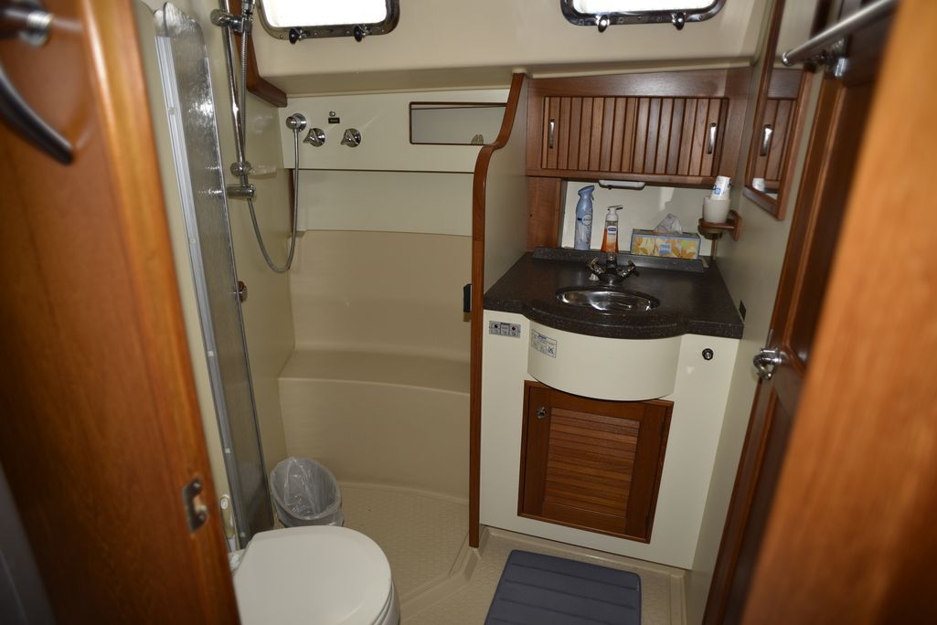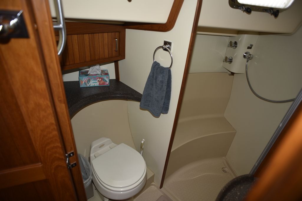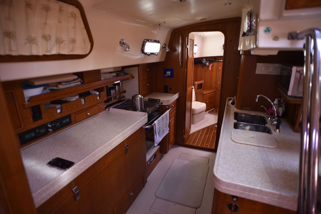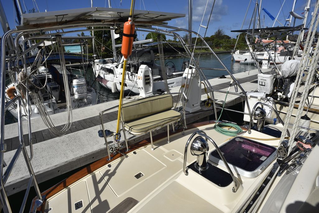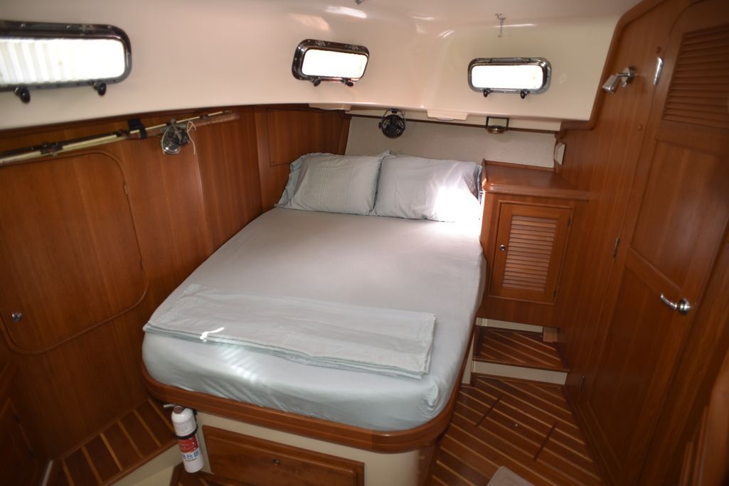 The center cockpit 445 possesses all the exemplary qualities that have earned Island Packet a worldwide reputation as the leader of cruising boat design and construction. Naval architect Bob Johnson and the Island Packet design team have created the 445 by combining the superior comfort, ease of use, seakeeping, and safety attributes that are the hallmark of every Island Packet, along with innovative new features and stunning good looks that will further reinforce Island Packet's position as America's Cruising Yacht Leader. Tankage and storage on the 445 is exceptional. All tanks are centrally located below the cabin sole, benefiting stability and interior storage space elsewhere in the yacht with minimal effect on trim. Every detail, from the geared rack and pinion steering system to the swedged and threaded fuel hose fittings, is carefully chosen for its important contribution to long term quality and reliability. Numerous details like magnetic reed bilge pump switches and thru-bolts with lock nuts on both seacocks and prop shaft couplings typify the approach to building every aspect of an Island Packet. Heavy duty, high output alternators with Digital Duo-Charge controllers, premium pre-tinned wiring, and large capacity absorbed glass mat (AGM) batteries reflect the many quality features built into the 445 that help ensure the owner years of comfortable, trouble-free cruising.