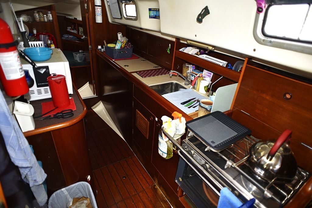 The Beneteau 36CC offers generous deck space for sunbathing, socializing, and handling sail maneuvers. Theforedeck includes a large anchor locker and windlass, while the aft deck provides additional storage and access to the swim platform.