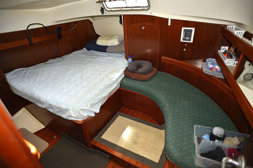 The aft cabin features a large double berth, extensive storage, and en-suite facilities, offering a private retreat for the owners. Natural light and ventilation are plentiful, creating a serene and comfortable environment.