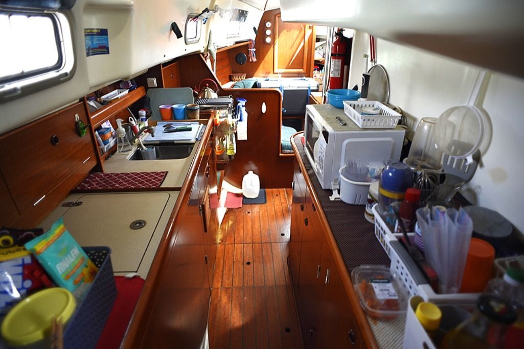 The interior of the Beneteau Oceanis 36CC is designed to maximize space and comfort. The centre cockpit layout allowsfor a spacious aft cabin, providing a private and luxurious master suite. The saloon is bright and airy, with ample seatingand storage. The well-equipped galley and large navigation station make extended cruising a pleasure.