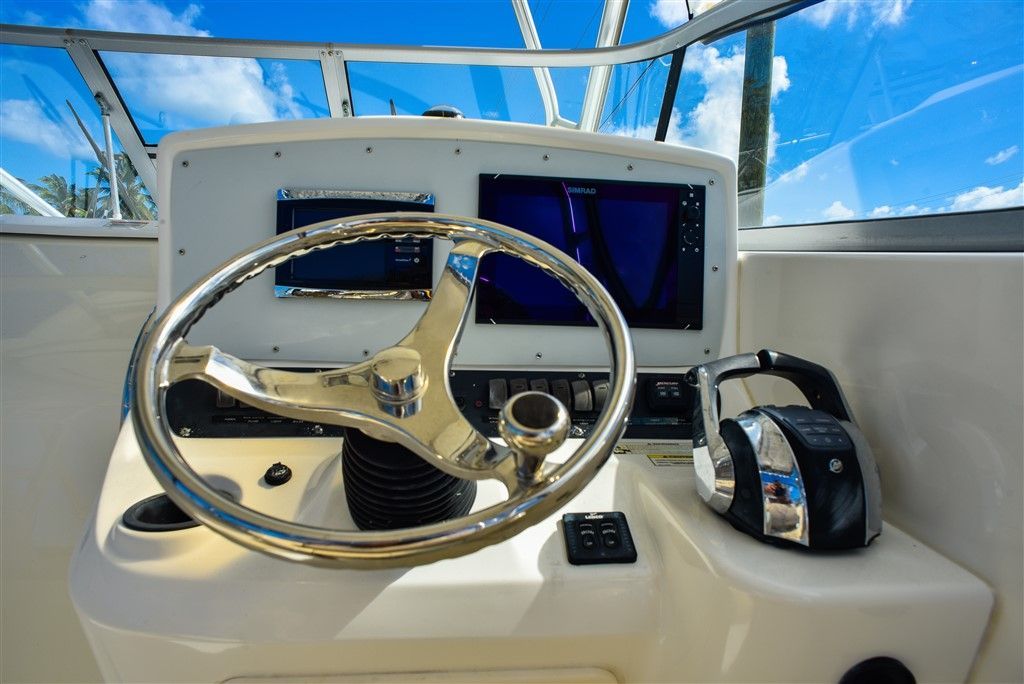 This 2006 Boston Whaler 305 Conquest is the ultimate fishing and cruising vessel. With a spacious layout and comfortable seating, this boat is perfect for entertaining guests or a day out on the water. She is powered by twin 300 horsepower Mercury Verado outboards, which were replaced in May 2016, providing plenty of power and speed. The boat also features a full galley, a head, and a large V-berth for overnight stays. Other notable features include a windlass anchor, and a hardtop with an enclosure. This 2006 model is in excellent condition and has been well-maintained. Keep in mind that the generator has been removed but this boat is still packed with all the amenities you need for a great day on the water. Don't miss out on this opportunity to own a Boston Whaler