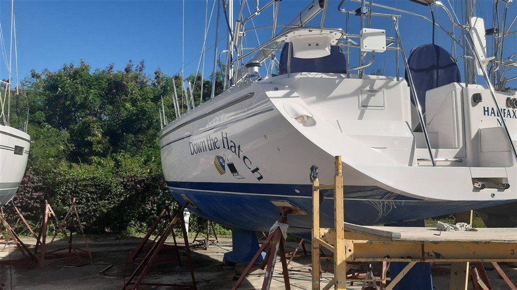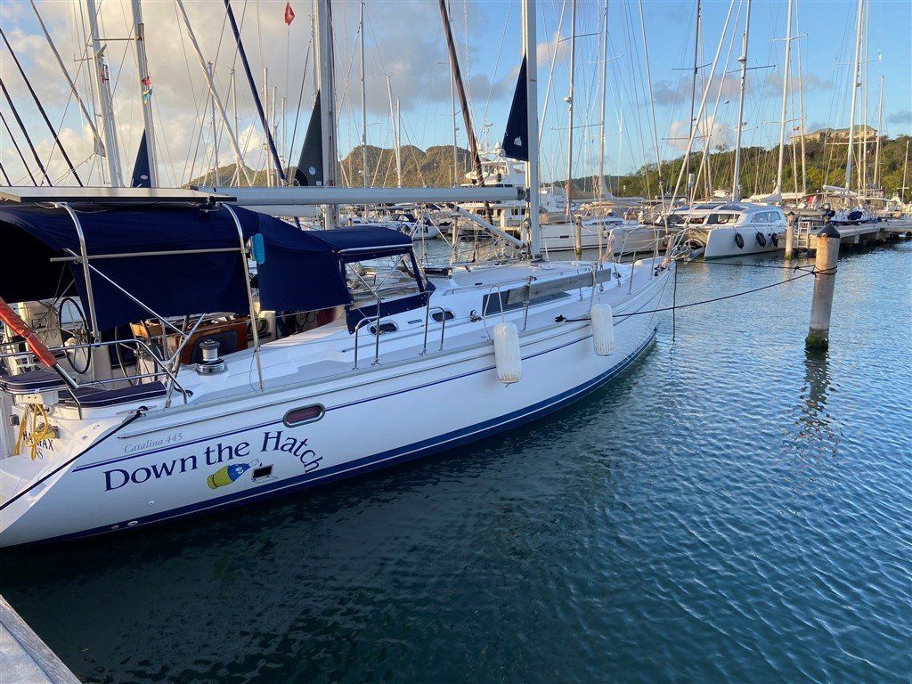 The deck and topsides have been freshly cleaned and waxed and stainless steel polished. She has a new coat of Micron 66 applied just before launch.