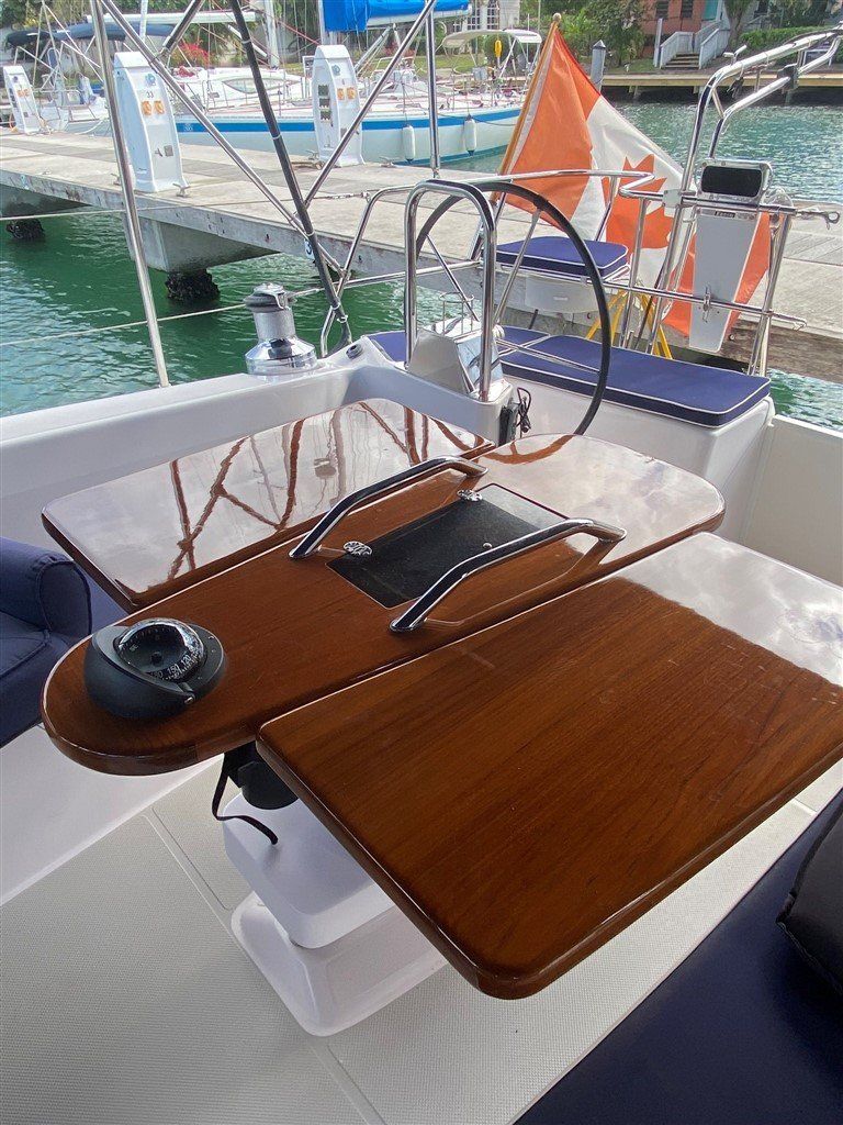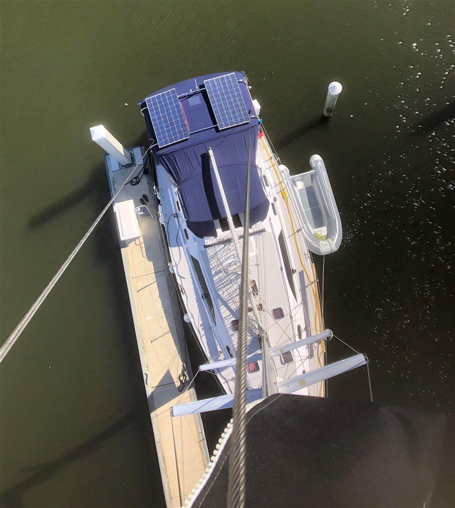 Hull number 78. Construction commenced in the fall of 2012 with commissioning completed in 2013. Her original owners kept her on the Delaware River, near Philadelphia and she largely sat at the dock, in freshwater. Current owners took her to Florida in the fall of 2018 mostly via the ICW. Spent one aboard in the Bahamas and put her on the hard in Northern Florida for the summer in 2019.