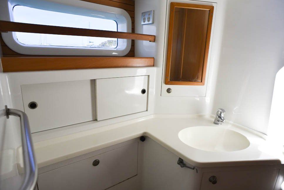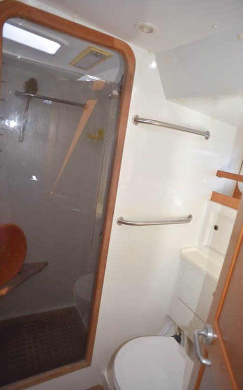 The master suite is a queen pullman style forward cabin with en-suite head and separate shower.