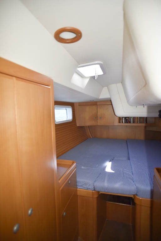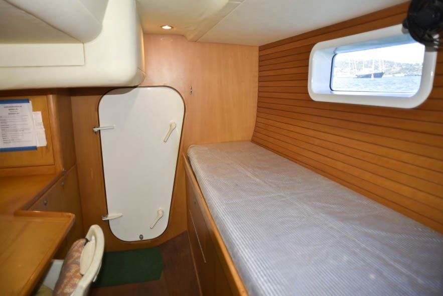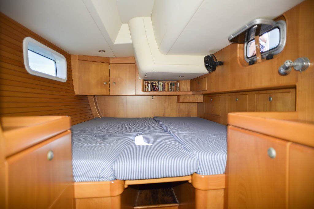 To starboard there is a double cabin with queen size bed that can convert to 2 single beds that also boasts an en-suite head.