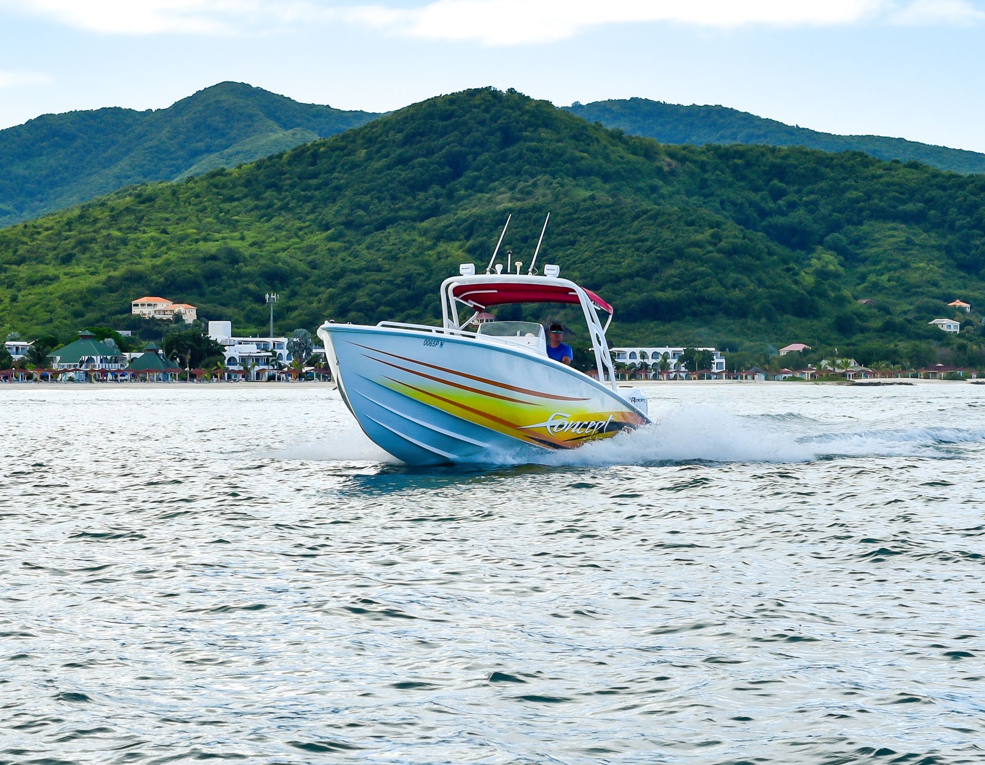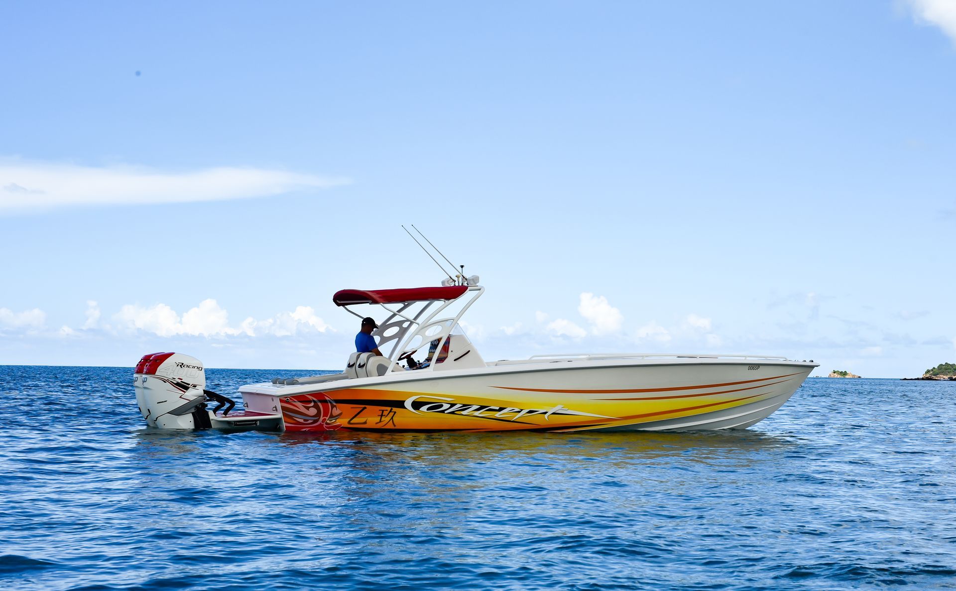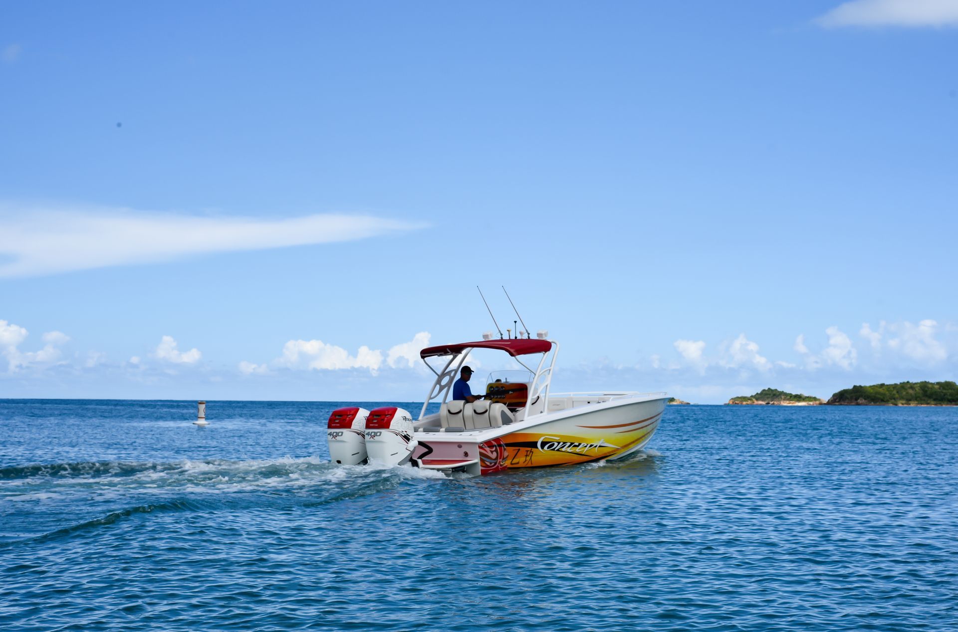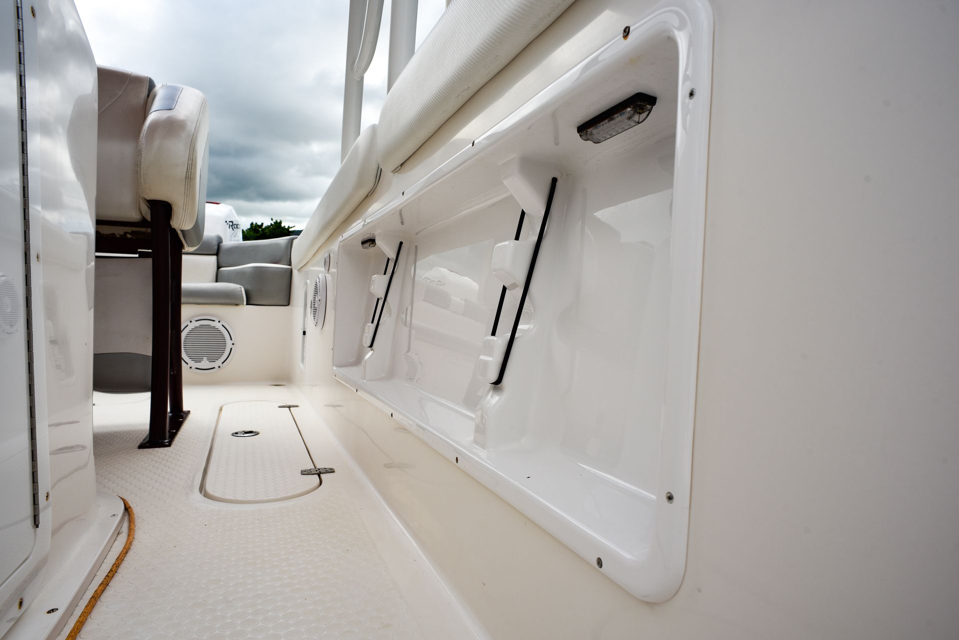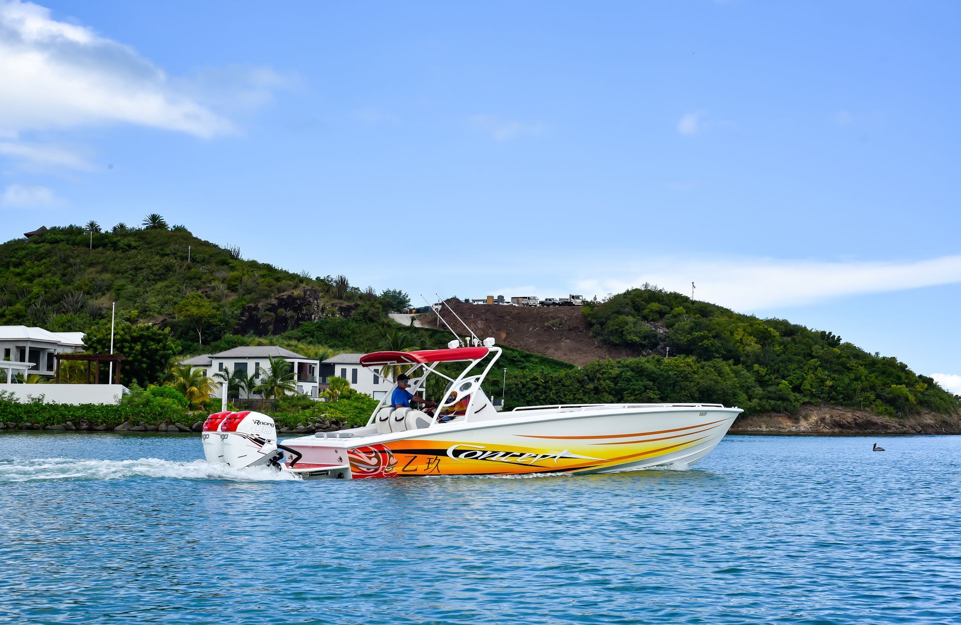 This 2006 Concept 36 is a high-performance Center Console designed for speed and comfort. Equipped with twin Mercury Verado I-6 350hp engines, each with just 310 hours, this boat can reach speeds as high as 69 mph. The owner replaced the original 350hp decals with 400hp stickers for a bolder/more aggressive look.