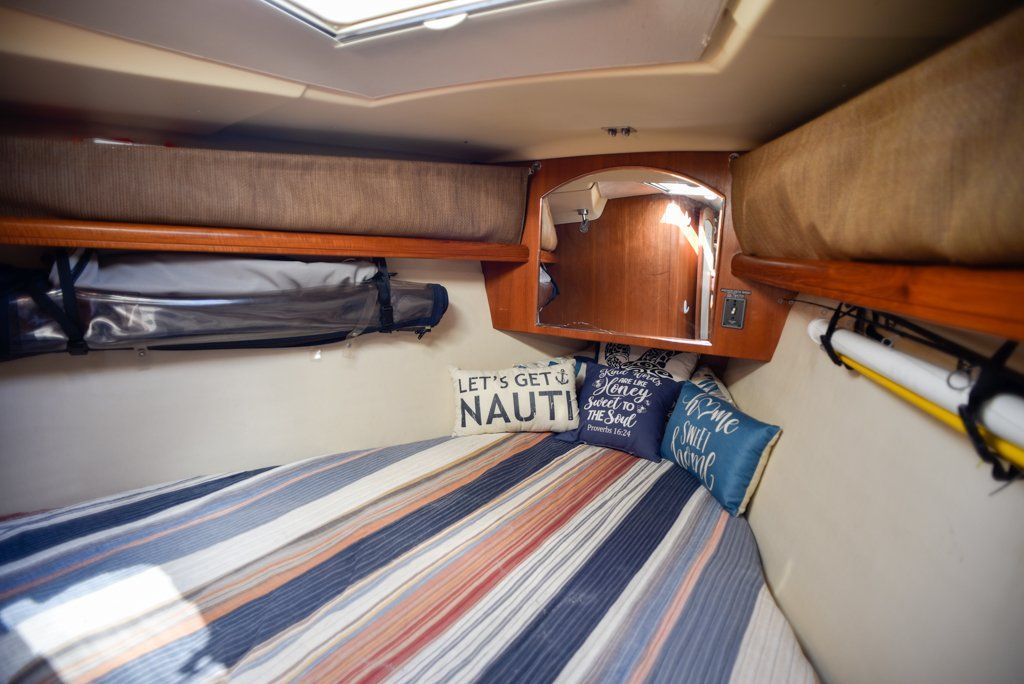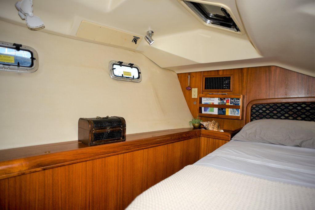 - Phone and sunglasses storage at companionway