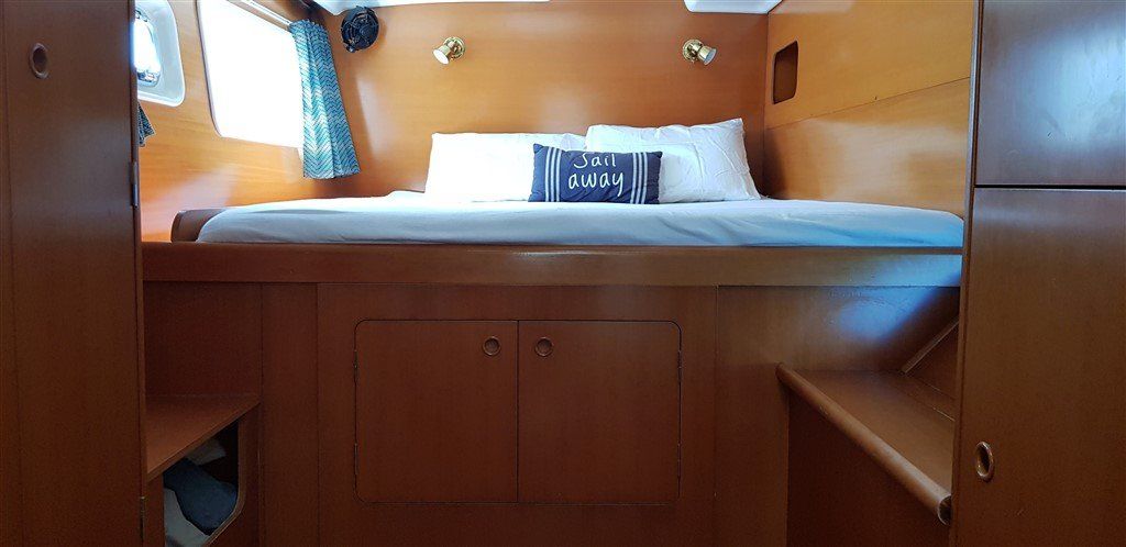 Lagoon 380 S2 offshore cruising catamaran. The layout is the rare and sought after Owner’s Version which greatly enhances the interior space with a master suite utilizing the entire starboard hull with a good sized head and a separate shower room.