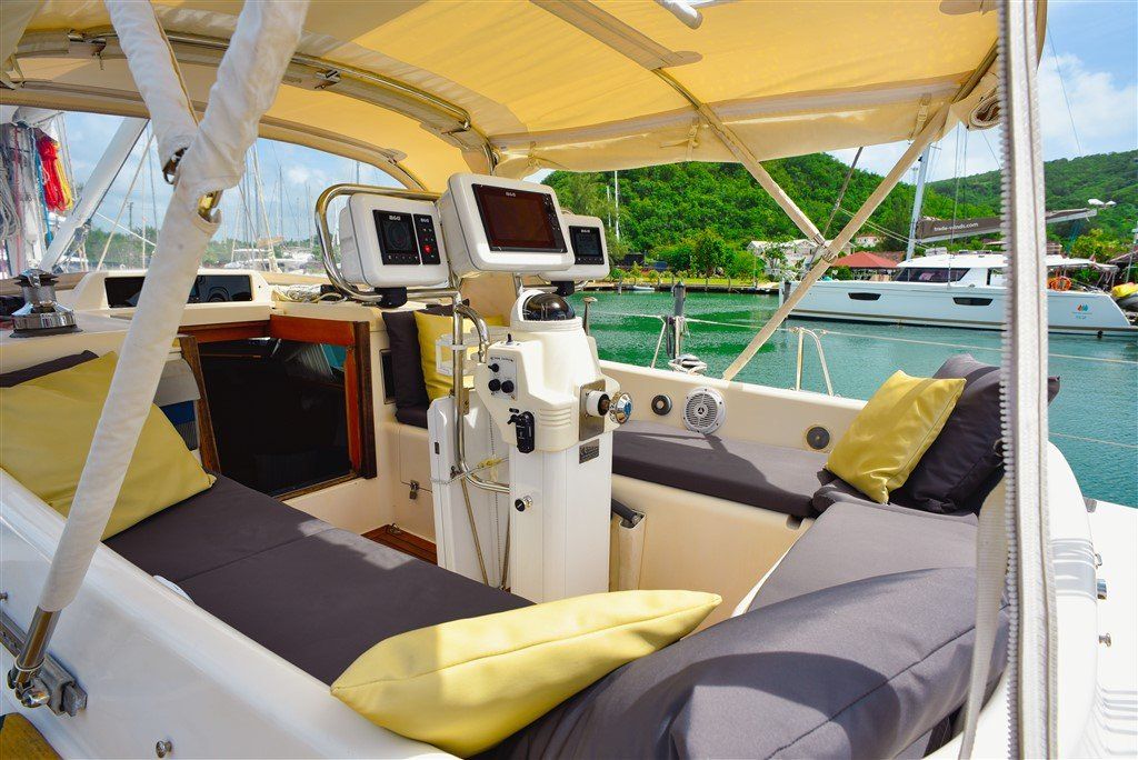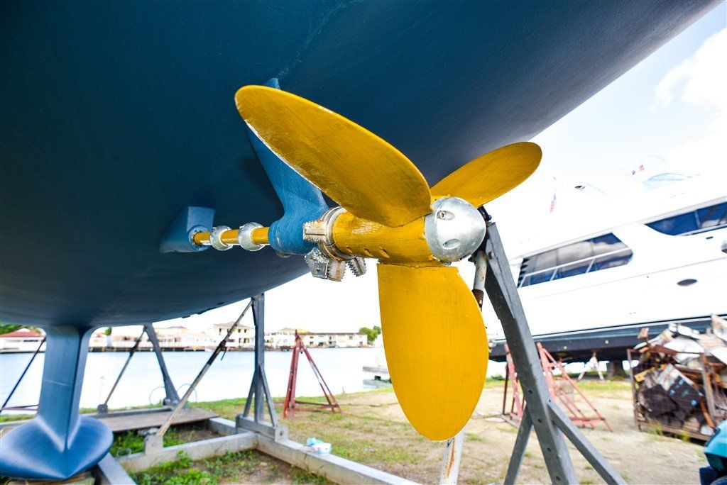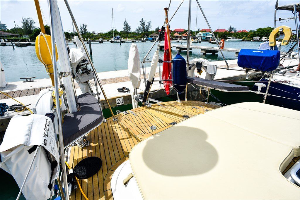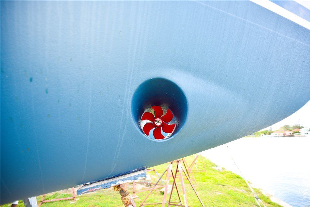 The boat has recently been out of the water in Jolly Harbour and relaunched 20 October 2022. Just prior to launch the anti-fouling was renewed with one coat of SeaHawk 1277 primer and two coats of SeaHawk Biocop Dark Blue which is approved for the USA. The prop was also coated in ‘Pellerclean’, all anodes replaced, seacocks worked and greased and topsides polished.
