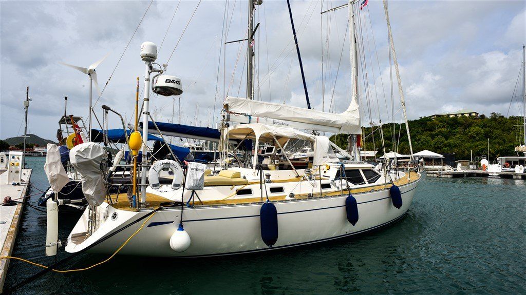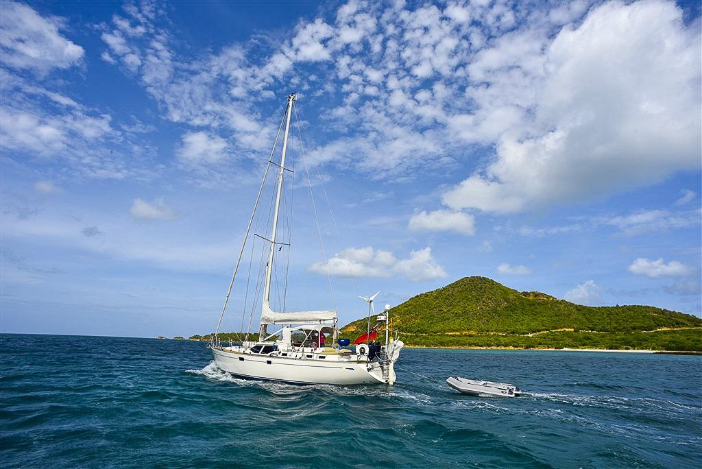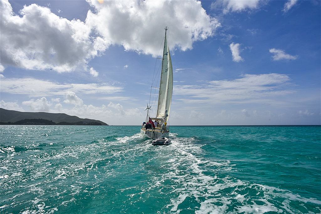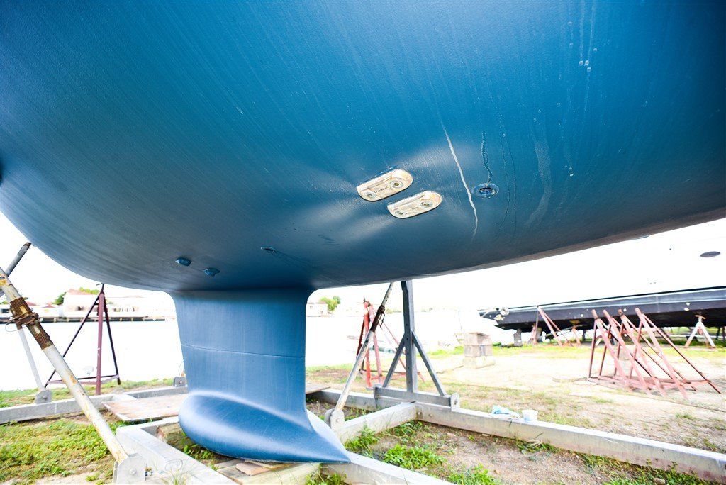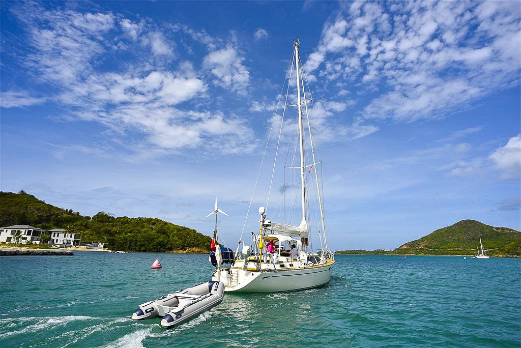 The boat has recently been out of the water in Jolly Harbour and relaunched 20 October 2022. Just prior to launch the anti-fouling was renewed with one coat of SeaHawk 1277 primer and two coats of SeaHawk Biocop Dark Blue which is approved for the USA. The prop was also coated in ‘Pellerclean’, all anodes replaced, seacocks worked and greased and topsides polished.