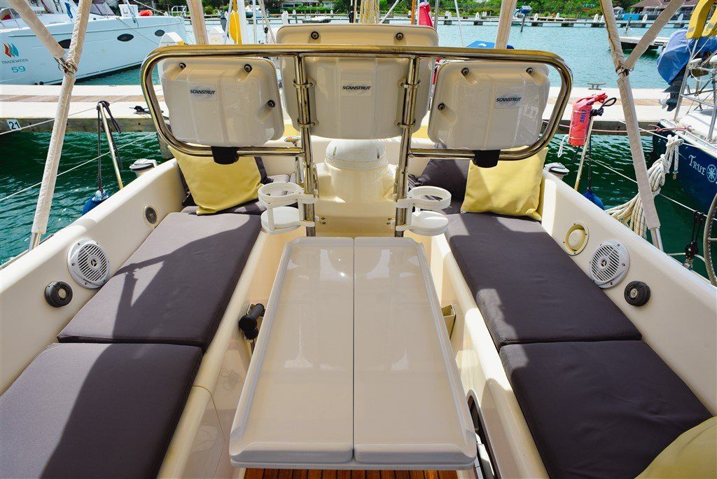 - Bimini Top: SUN SUADE CANVAS. MAST TO STERN