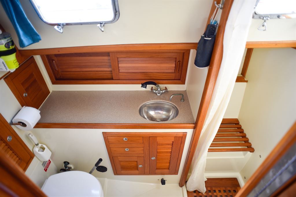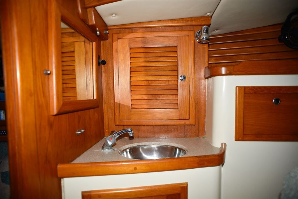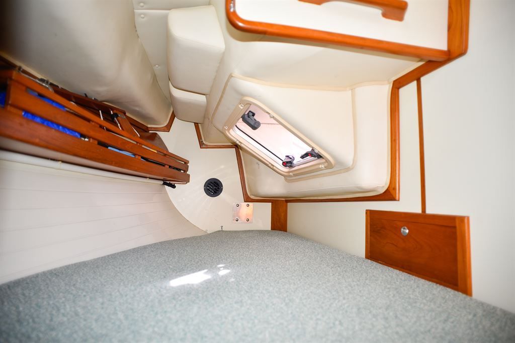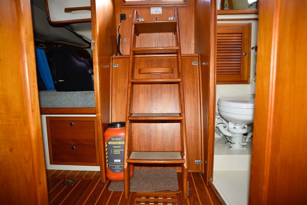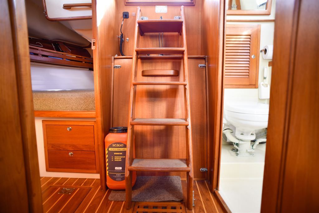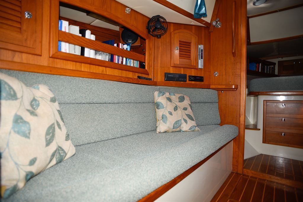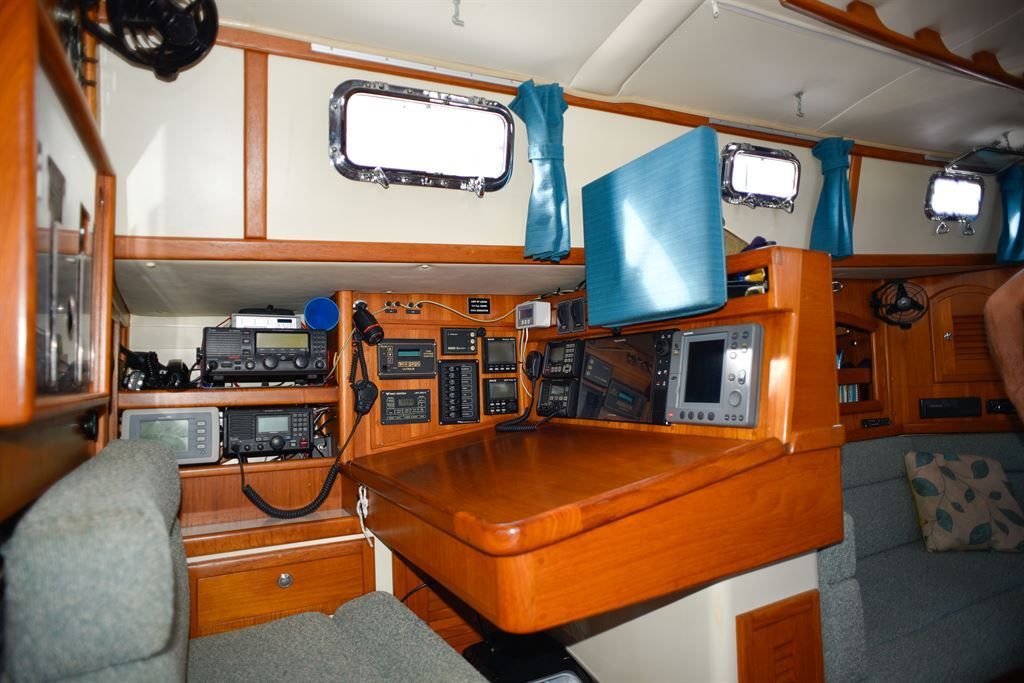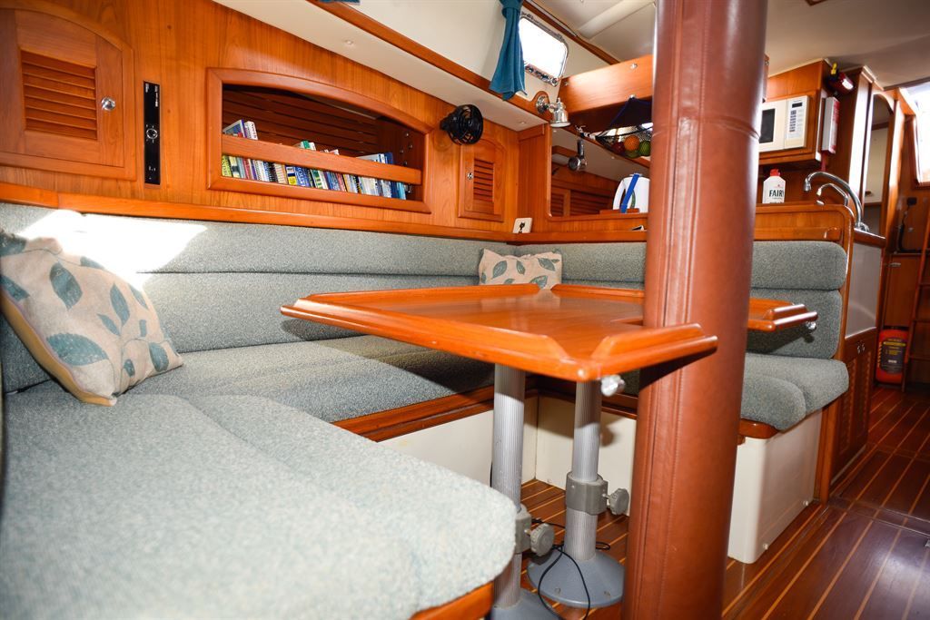 It's worth noting that this Pacific Seacraft PS 40 has a versatile interior layout that can accommodate up to seven people comfortably by lower the saloon table making it even more versatile for a larger crew. This feature is perfect for family or friends who want to enjoy an extended sailing trip.