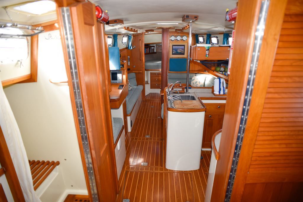 This beautiful yacht is designed by the renowned Bill Crealock, (hull number 41) built in Fullerton, California by Pacific Seacraft Corporation. Commissioned in Falmouth, England in April 2000, she is a testament to her impeccable design and build quality. The original owners safely cruised over 30,000 nautical miles, taking her across the UK, Baltic, NW Europe, Spain and Portugal, and even across the Atlantic in 2005.