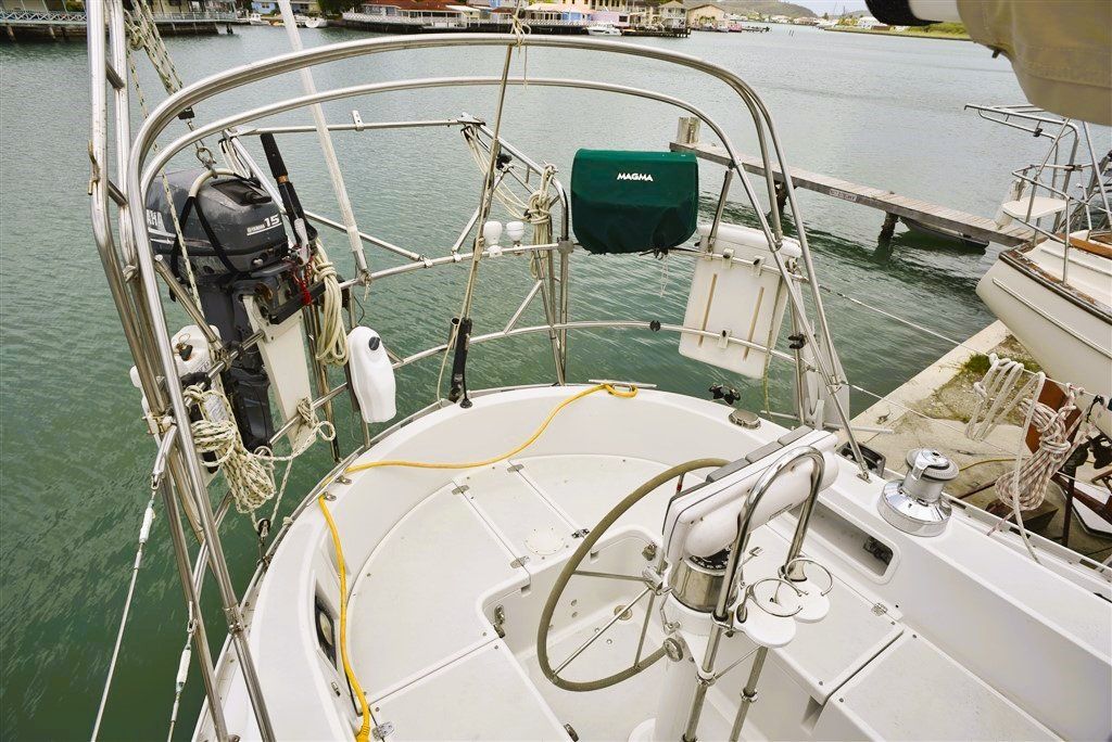 Comes with custom fitted sheets, blanket and mattress pad for the V berth (which has also had 2 extra inches of foam mattress padding added); custom cockpit cushion and grate; cockpit table.
